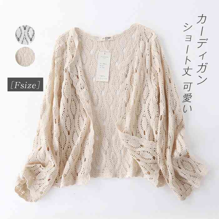 カーディガン レディース 春夏 ショート丈 透かし編み 長袖 無地 羽織り はおり シンプル ナチュラル トップス カット 対策 日焼け対策 紫外線対策 20代 30代 40代 50代