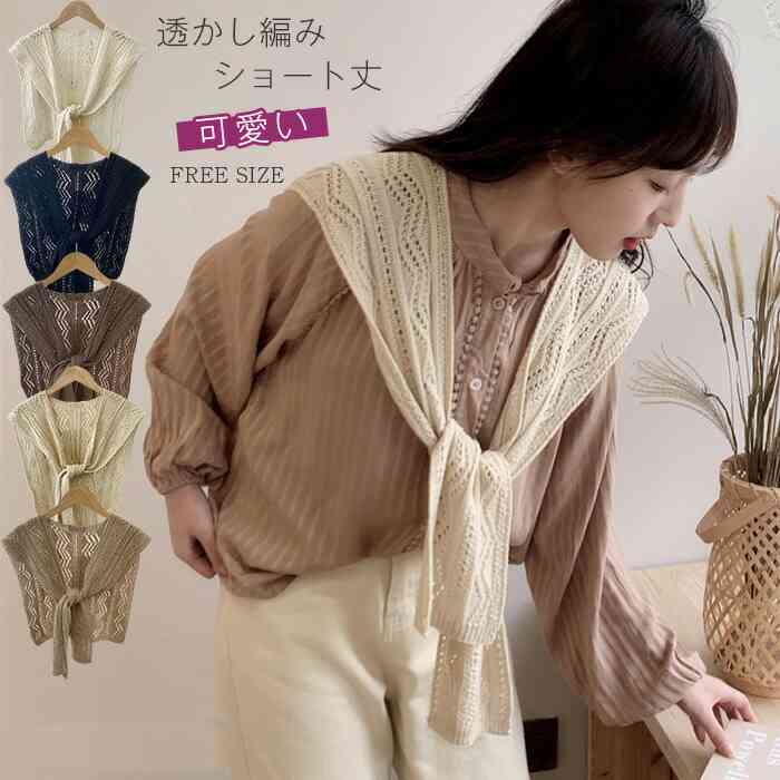 付け襟 レディース ショート丈 肩かけ ニット ストール サマーニット 透かし編み 薄手 カーディガン風 肩掛け レディース トップス ケープ ショルダーカーディガン