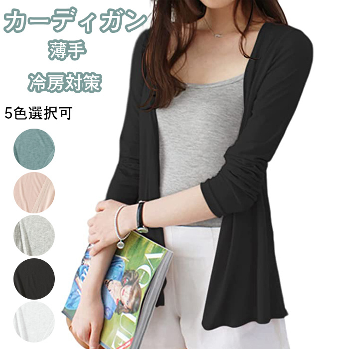 カーディガン 薄手 レディース ボタンレス サマーニット 冷房対策 5色展開 uvカット トップス きれいめ 上品 通気性 春 夏 秋 5色展開 M L XL