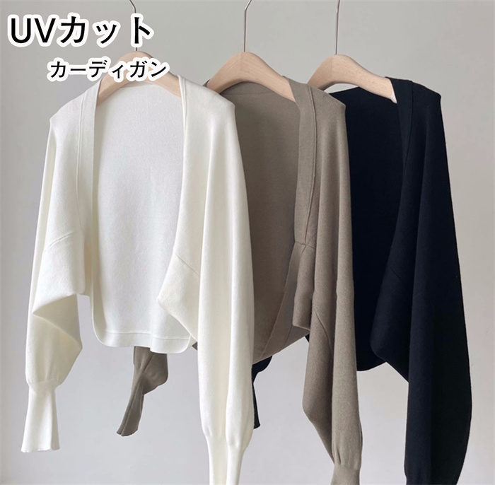 ニット レディース カーディガン 春 夏 トップス UVカット 薄手 ニットカーディガン きれいめ ショート丈 クルーネック 長袖 ニット春物 夏物 はおり ボタン無し ノーボタン