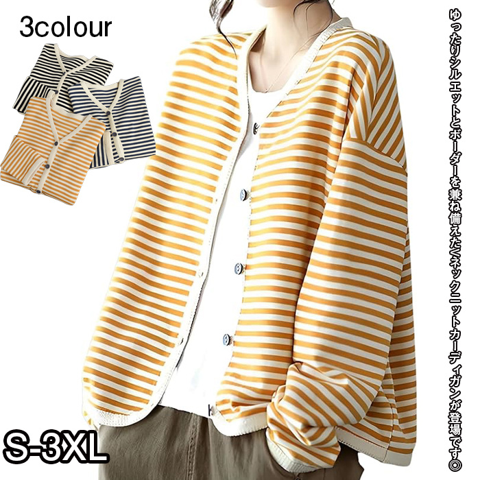 カーディガン ボーダー ニット オーバーサイズ ルーズ ゆったりカーデ 長袖 カジュアル 秋冬 レディース S-3XL