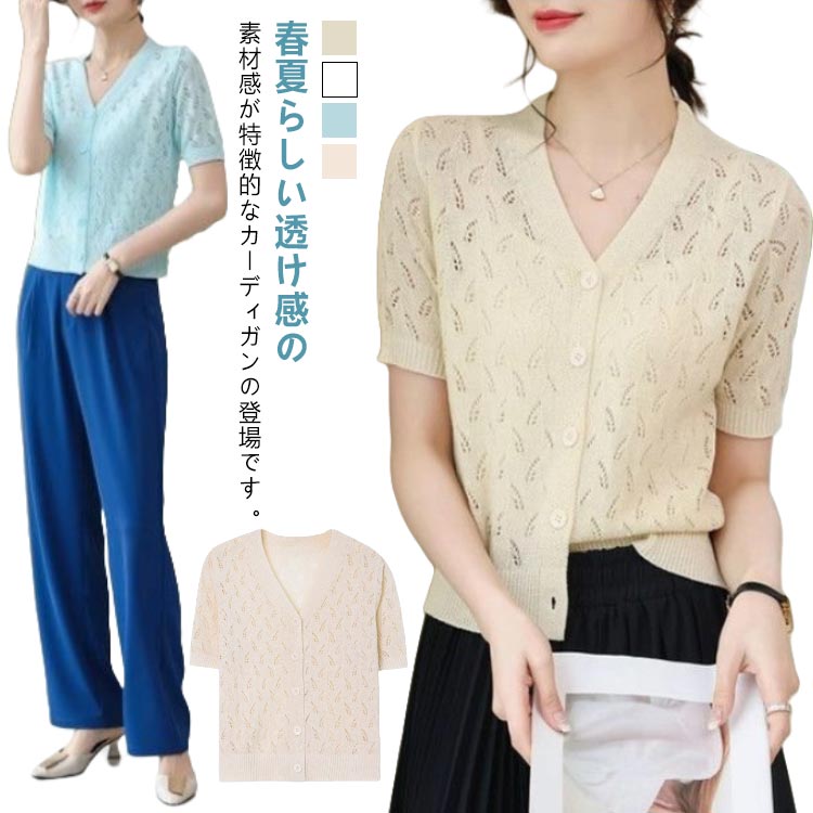 カーディガン レディース 透け感 半袖 サマーカーディガン ショート丈 透かし 夏レディースファッション トップス カーディガン ボレロ