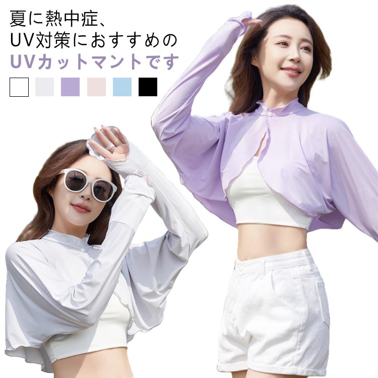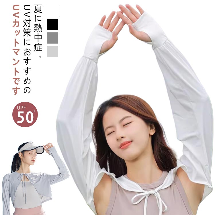 upf50 UVマント ボレロタイプ 前後差 接触冷感 着るアームカバー 羽織り 熱中症対策 ボレロ型 着る日焼け止め 手袋 指穴付き UVケープ ひんやり 涼しい UV対策 冷房対策 UVカット