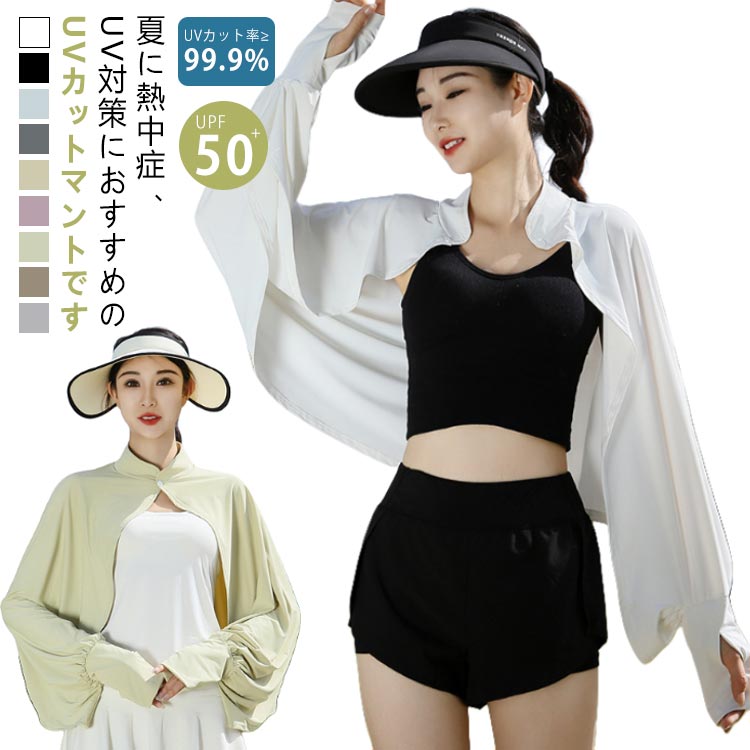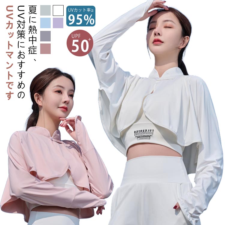 マント ボレロタイプ 50 接触冷感 ケープ 着るアームカバー 羽織り 薄手 着る日焼け止め ひんやり 涼しい 対策 冷房対策 カット
