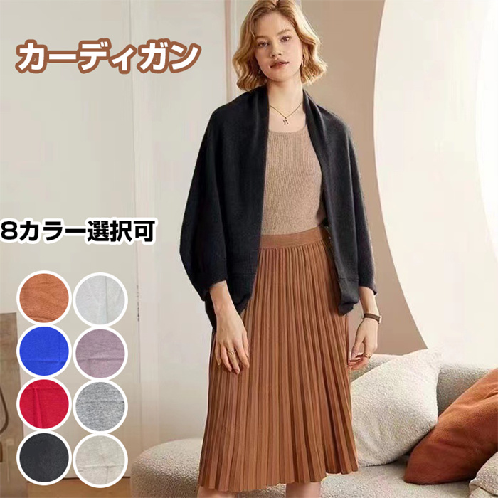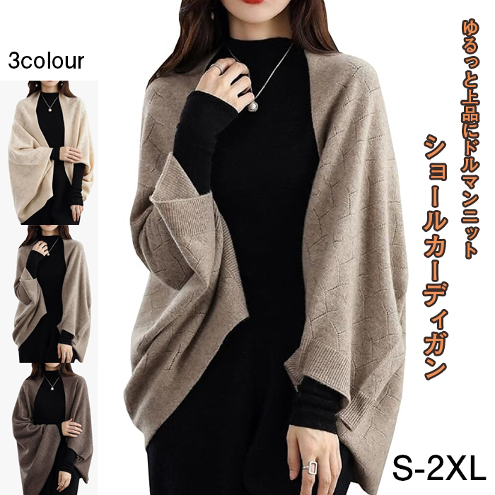 カーディガン レディース トップス ショール ドルマンスリーブ ショート丈 無地 ニット ニットカーディガン シンプル ベーシック ポンチョ 柔らかい ソフト もっちり 手洗い