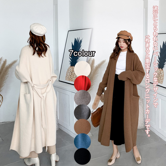 カーディガン レディース トレンド 春物 新作 ニット ニットカーデ ネック ロング丈 ゆったり ロングニット ロングカーディガン アウター 無地 定番 カジュアル -