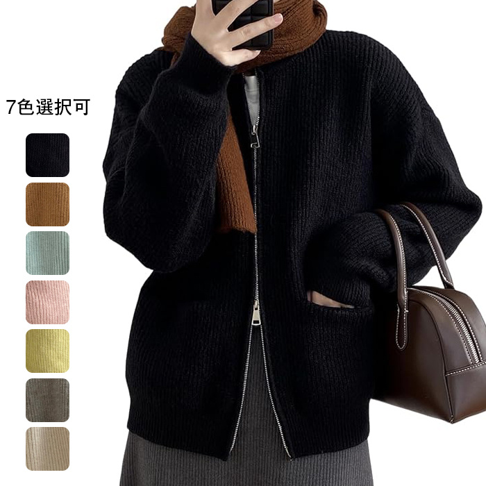 7色展開 ニット ジップ ブルゾン レディース アウター カジュアル ジャケット 春 秋 冬 フリーサイズ