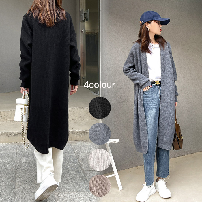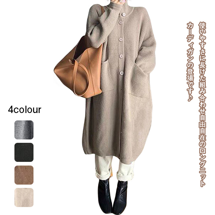 4色展開 ハイネック ロングカーディガン ニット コート アウター コクーン レディース 秋 冬レディースファッション トップス カーディガン ボレロ