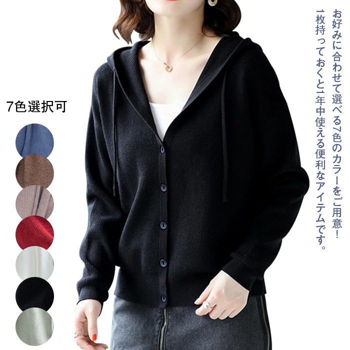 カーディガン レディース フード付き きれいめ パーカー ニット 秋冬 長袖 羽織 防寒 7カラー フリーサイズ