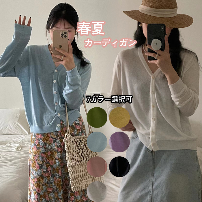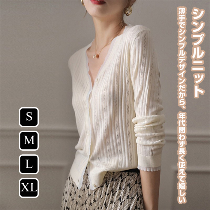 カーディガン レディース サマーニットカーデ 薄手春夏 ベーシック ニットカーディガン Vネック 日焼け止めシャツ 可愛い オフィスカジュアル きれいめ リブ袖 無地 セーター