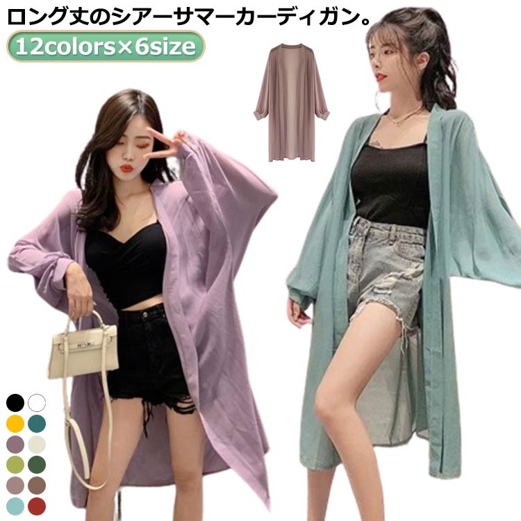 長袖 薄手 カーディガン 夏 ロングカーディガン ロング シフォンカーディガン カーデ 紫外線カット 紫外線対策 サマーカーディガン 長め丈 長め 紫外線対策 ロング丈 羽織り 涼しい 透け感 きれい