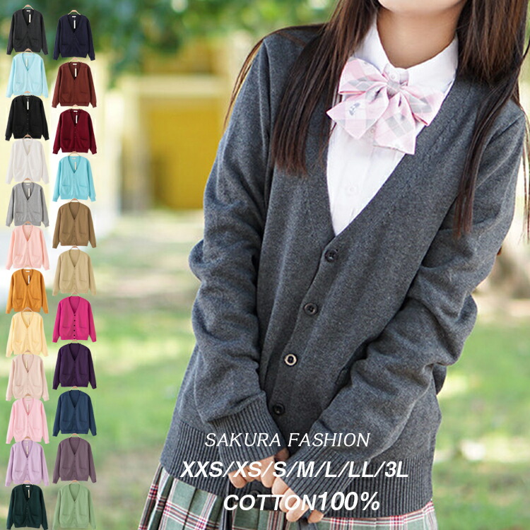 カーディガン スクールカーディガン スクール ネック オフィス 制服 カーディガン レディース 春 高校生 学生服 ニット コットン 100% ユニフォーム コスチューム 男女兼用 制服 学生服 女