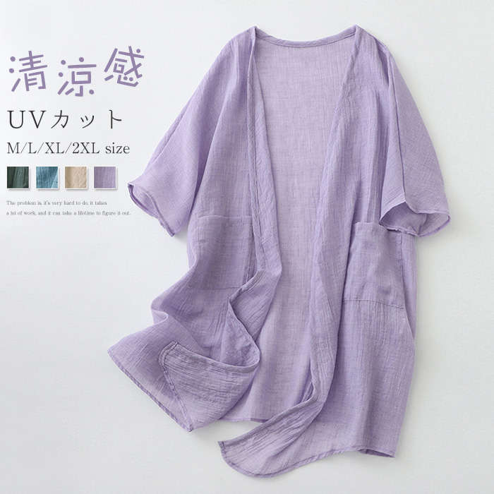 全4色 暑い季節に使い回し ロング丈 リネンカーディガン パーブル ベージュ グリーン ブルー 大きいサイズ 春夏 UVカット 日焼け止め プレゼント 贈り物 ギフト 母の日 ♪