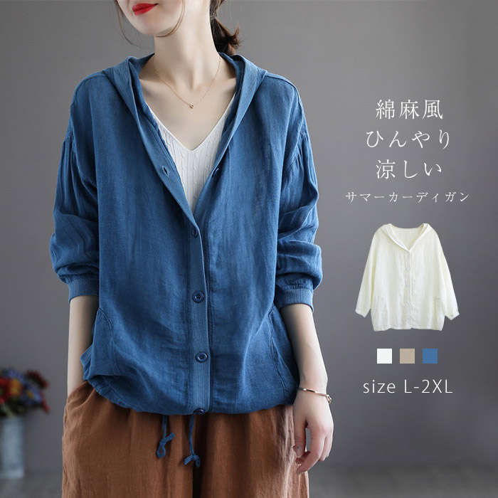 カーディガン 紫外線対策 レディース フード付き 前開き シンプル レイヤード 上品 柔らか 仕事 大人 ゆったり