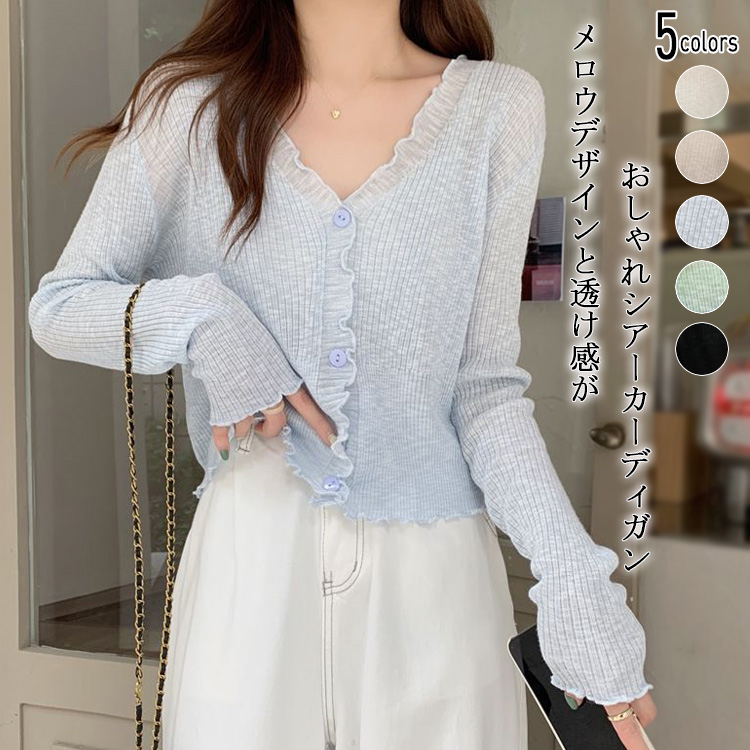 レーディスカーディガン 長袖 薄手 おしゃれ ネック 羽織 夏 カーディガン 紫外線対策 カット シアー サマー ニット ディガン ボレロ リブ ニット