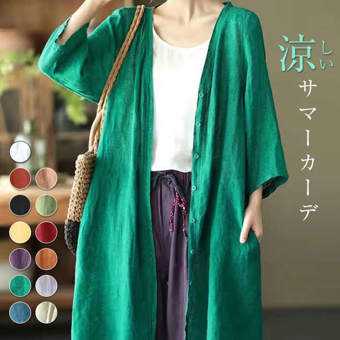 軽くて 涼しい~ 夏の定番 ロングカーディガン Linen coat ♪レディースファッション トップス カーディガン ボレロ