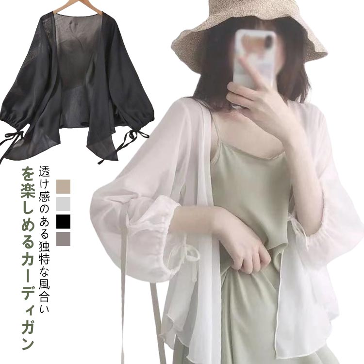 ~2 シフォンカーディガン 薄手 透け感 羽織 紫外線カット 冷房対策レディースファッション トップス カーディガン ボレロ