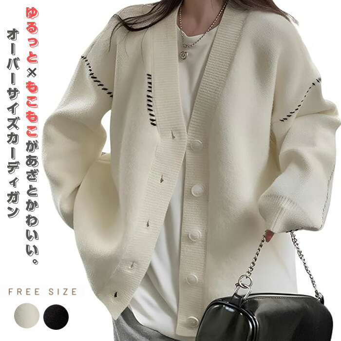 シンプルなデザインで着回し力も抜群 オーバーサイズ カーディガン ニット 韓国 ゆったり かわいい レディース セーター ロング 長袖 厚手 秋 冬