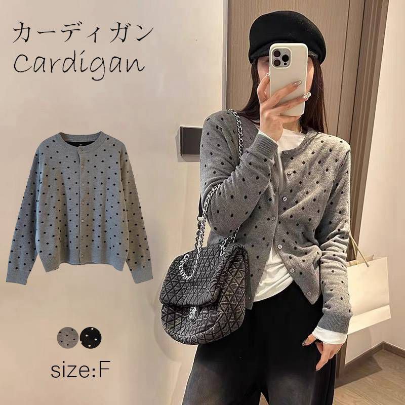 カーディガン レディース 秋冬 ドット 春秋 ゆったり カジュアル おしゃれ 秋 長袖 セーター ニットカーディガン ニット トップス ニット シャツブラウス ジャケット 体型カバー 重ね着 羽織り
