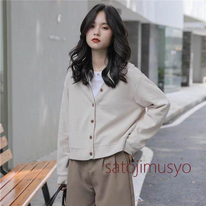 アウター トップス レディース スウェットカーディガン トレーナー カットソー Vネック 羽織り ボタン 前開き ボタン 長袖 ドロップショルダー 大人可愛い カジュアル シンプル