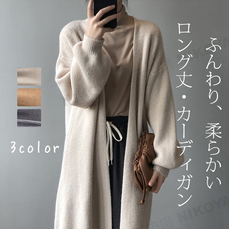 カーディガン レディース ロング丈 長袖 厚手 秋 冬 柔らかい ふわふわ きれいめ 可愛い 着痩せ オフィス ゆったり ニット セーター レディース ルーズ リブ 長袖 オーバーサイズ