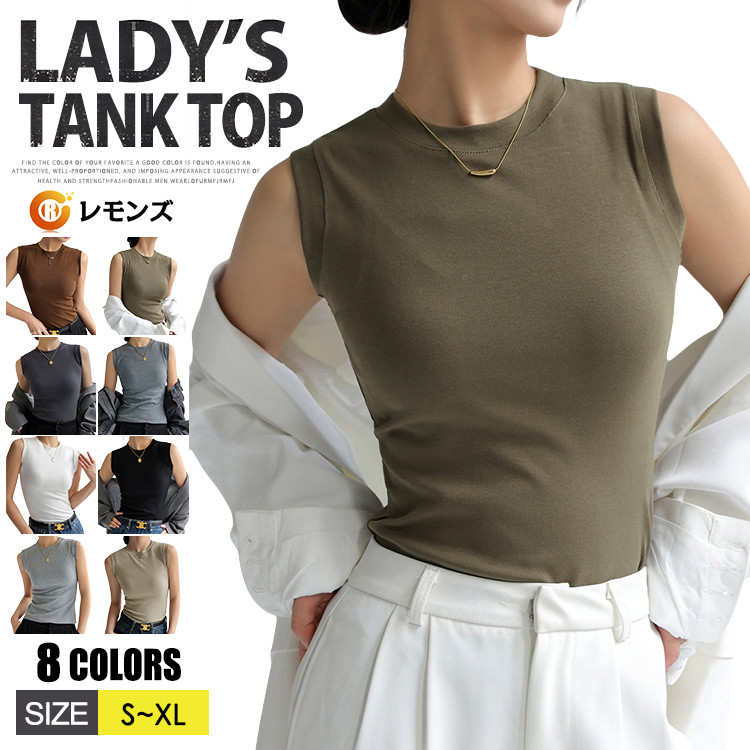 袖なし シャツ フィット 伸縮 ストレッチ カットソー インナー モックネックシャツレディースファッション トップス タンクトップ
