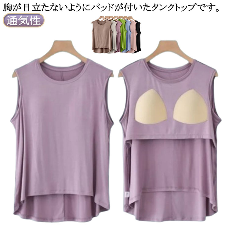 タンクトップ パット付き シャツ カップ付き 大きいサイズ ルームウェア ナイトウェア ヨガウェア 袖なし