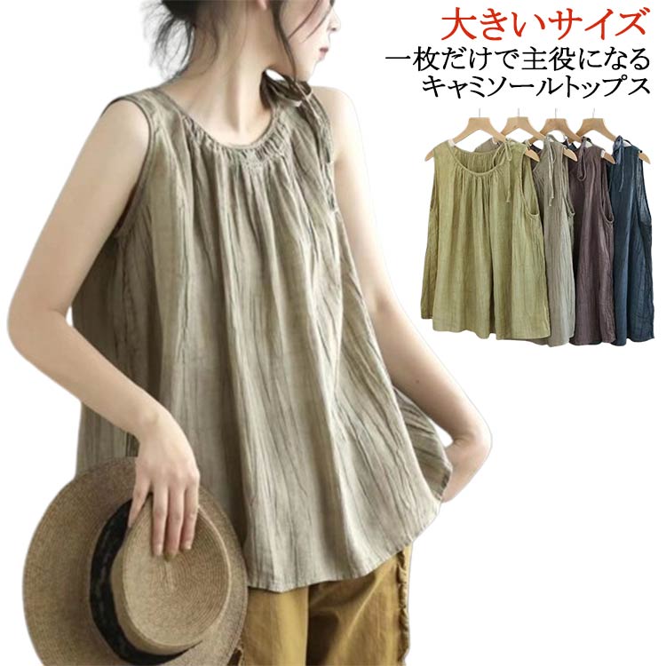 M~3XL 袖なし 大人可愛い キャミソール 部屋着 部屋着 ナチュラル ゆったり 無地 薄手レディースファッション トップス キャミソール