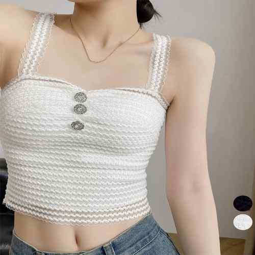 ノンワイヤー セクシー レースブラキャミ ヘソ出し 背中見せインナー 胸元ボタン シアーキャミソール ショート丈 着やせ ベアトップシンプル 下着 重ね着キャミ 肌見せ キャミ夏服