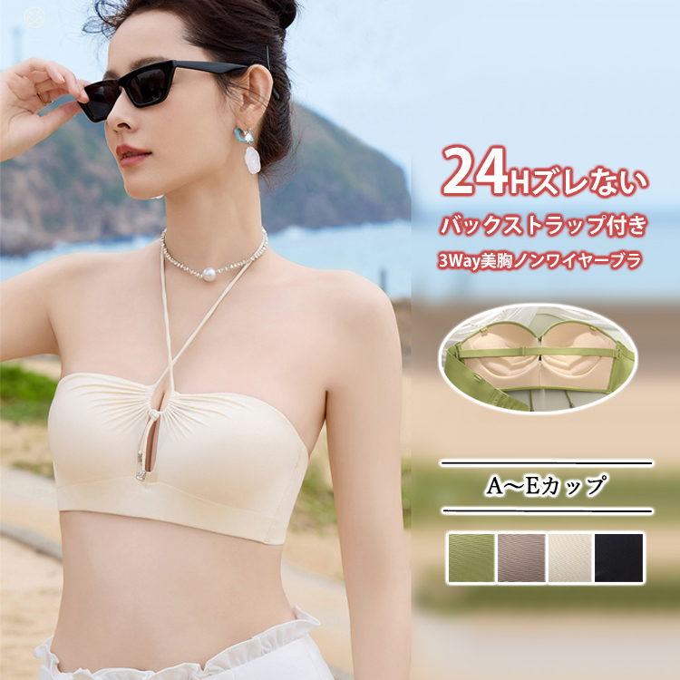 3way ノンワイヤー ブラトップ 美胸 カップ付き ブラキャミ ノンワイヤー ストラップレス チューブトップ バッククロス キャミソール カップ付き