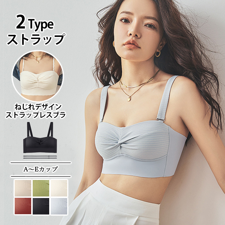 3 ノンワイヤー ねじれ ブラトップ 2タイプ ストラップ 美胸 カップ付き ブラキャミ ノンワイヤー ストラップレス チューブトップ キャミソール カップ付き