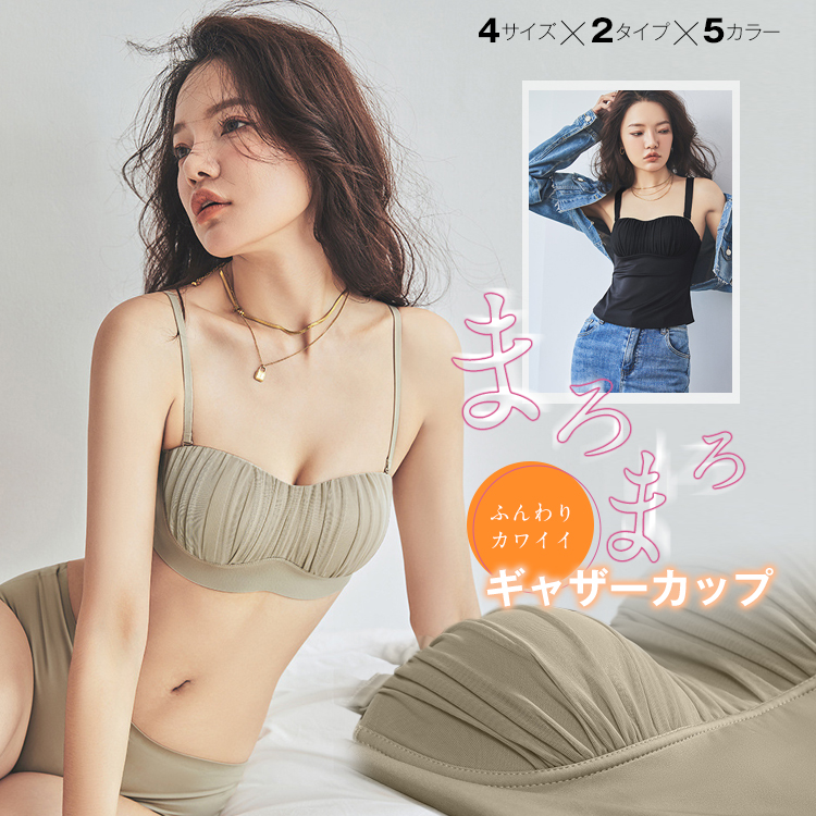 選べる丈感 ノンワイヤー ギャザーカップ ブラトップ カップ付き キャミソール ブラ 美胸 ズレ防止 ストラップレス バックストラップ 単品 ノンワイヤー チューブトップ