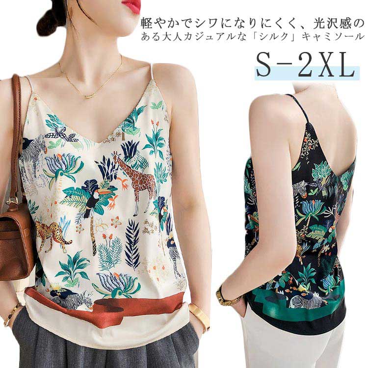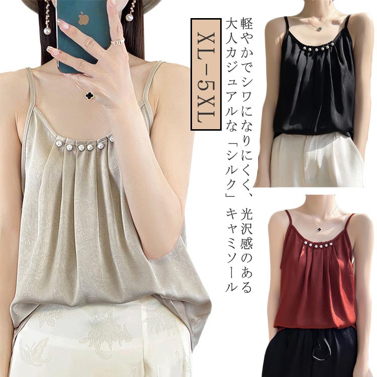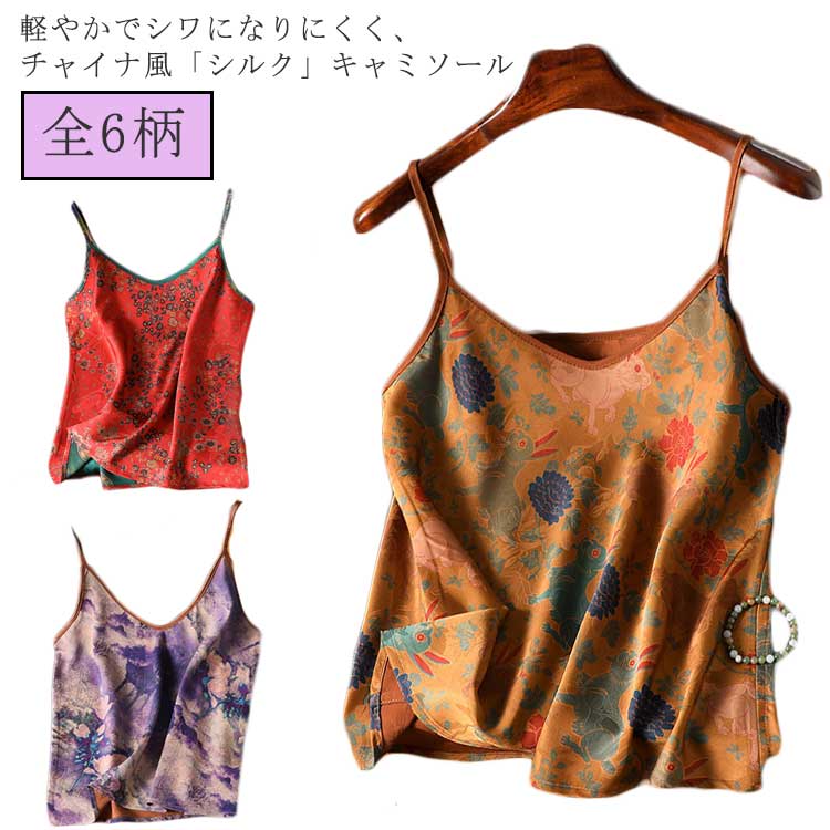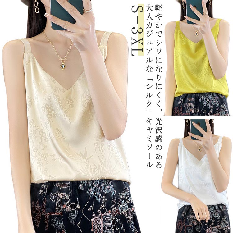 シルク キャミ シルク トップ タンク サテン調 快適 きれいめ レディース 夏用 中国風 通勤 シルク混 おしゃれ 黒 白 20代 30代 キャミソール