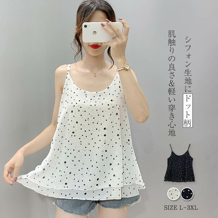 キャミソール セクシー シフォン キャミソール ゆったり レディース 大きいサイズ トップス ノースリーブ 可愛い インナー フレア
