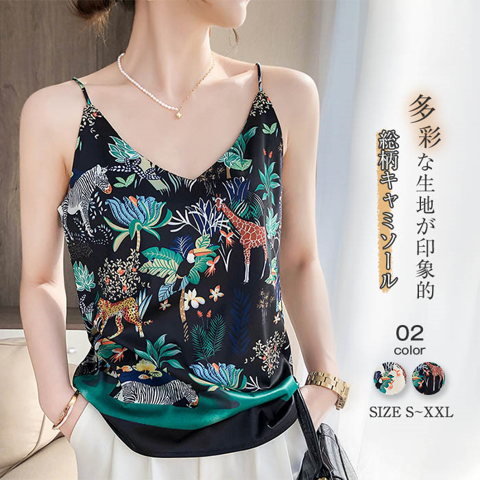 総柄 キャミソール セクシー 花柄 キャミソール ゆったり レディース キャミソール トップス ノースリーブ タンクトップ インナー 下着 きれいめ 上品