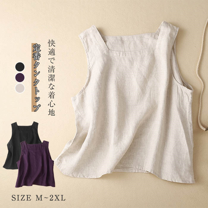 タンクトップ レディース リネン タンクトップ ゆったり タンクトップ トップス ノースリーブ 綿麻混風 インナー 下着