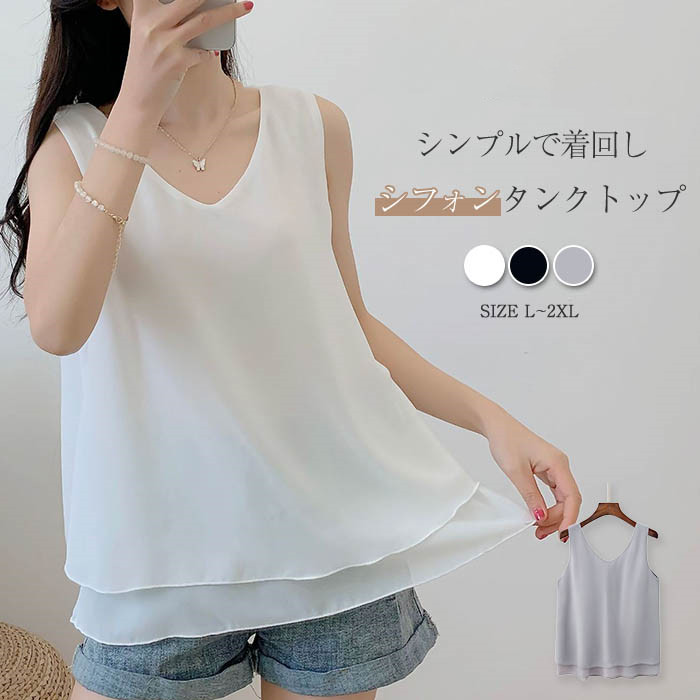 前後2 タンクトップ レディース ネック ネック シフォン タンクトップ ゆったり シフォンタンクトップ トップス ノースリーブ 薄手 涼しい インナー