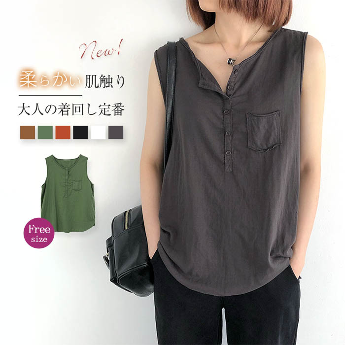 タンク タンクトップ レディース 綿 コットン シャツ ノースリーブ 切りっぱなし ゆったり トップス 綿麻風 インナー 下着 シャツ
