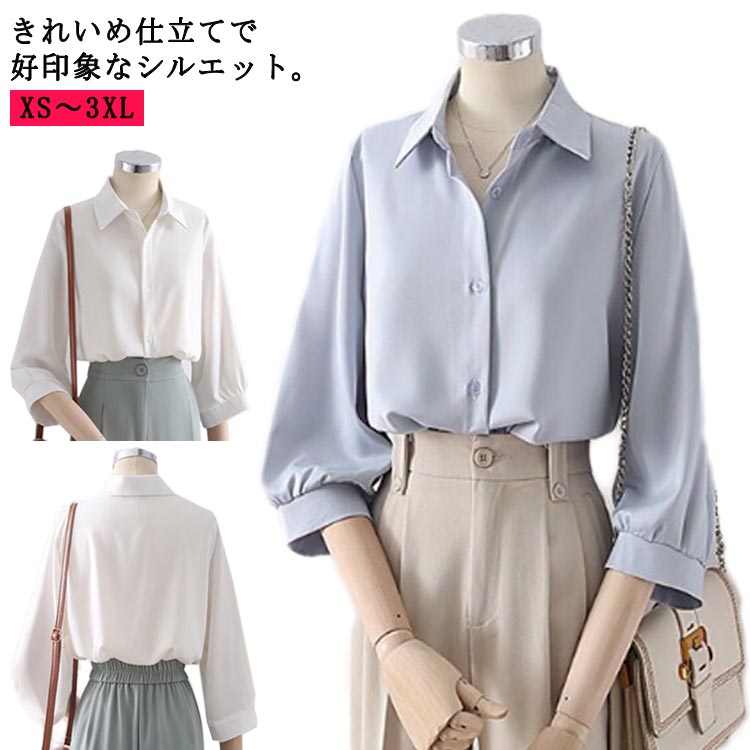 シンプル ブラウス シフォンブラウス ビジネス レディース ホワイト ブルーレディースファッション トップス シャツ ブラウス