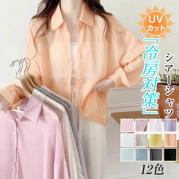 uvカット シャツ シースルー 接触冷感 程よい透け感で,着るだけで爽やか&こなれ感を演出するシアーシャツ 暑い夏にピッタリの人気アイテム クーラーで寒い時はさらっと着れる