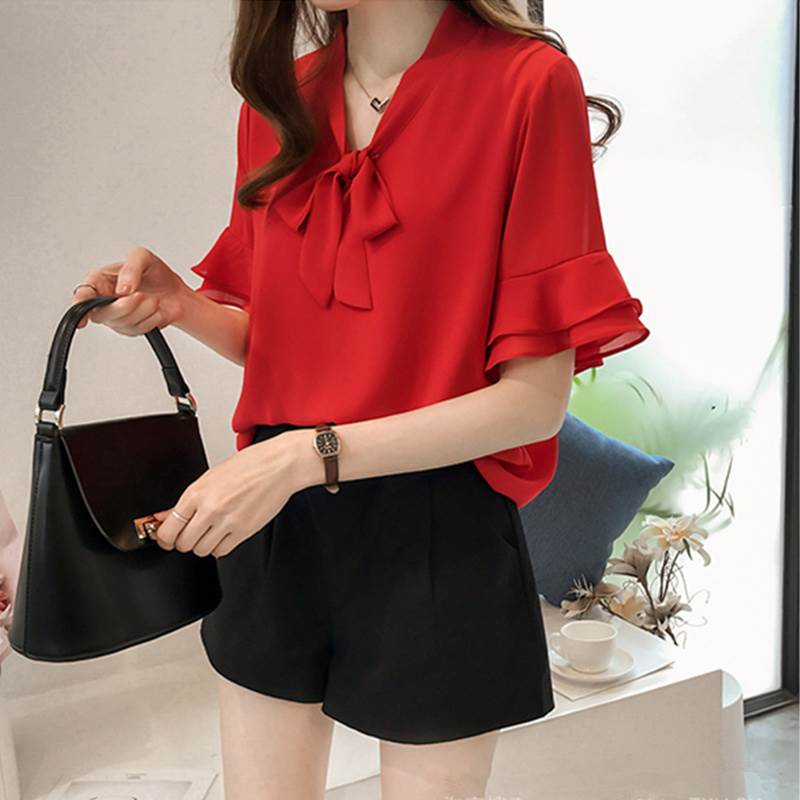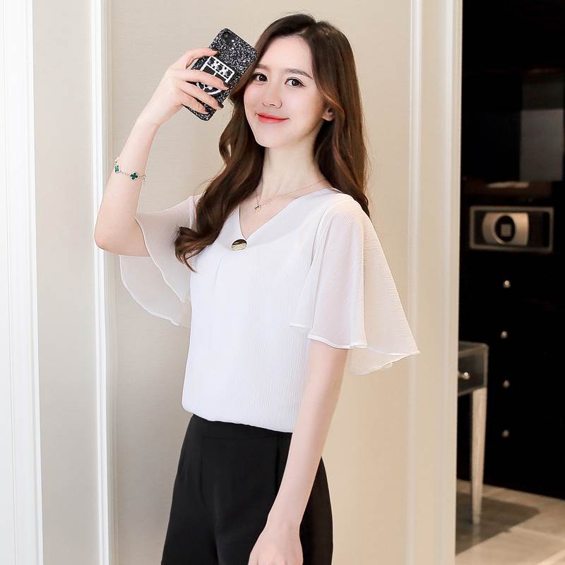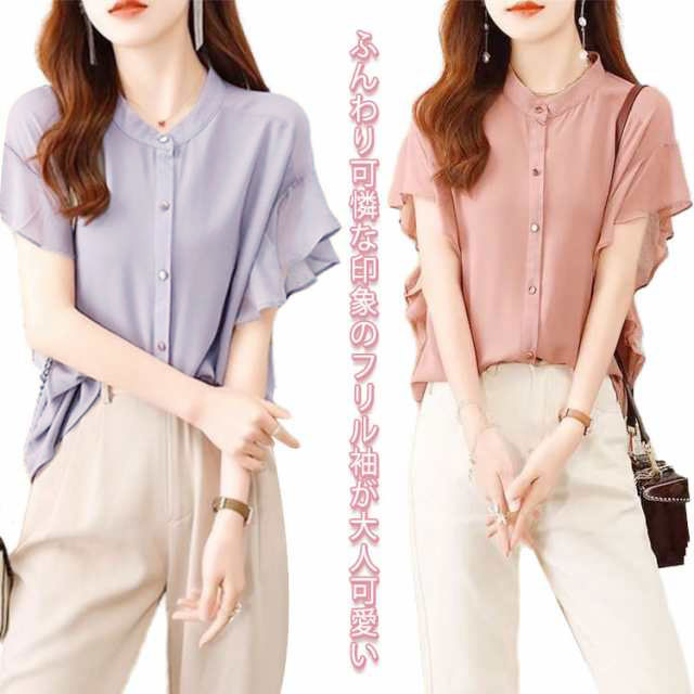 ブラウス レディース 夏 半袖 シフォン ブラウス シャツ フレア袖 前開きシャツレディースファッション トップス シャツ ブラウス
