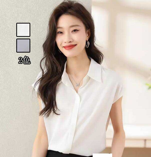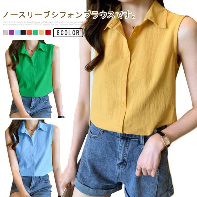 ブラウス シャツ レディース トップス ノースリーブ シフォン 襟付き 開襟 春 夏 カジュアルレディースファッション トップス シャツ ブラウス