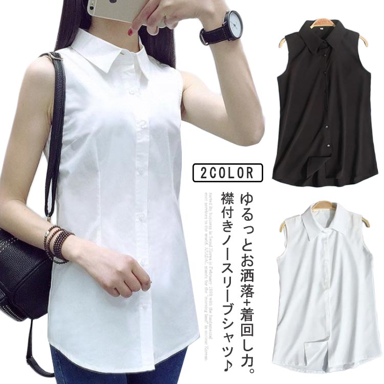 シャツ ノースリーブ レディース ブラウス 袖なし 白シャツ カジュアル タンクトップ ワイシャツレディースファッション トップス シャツ ブラウス