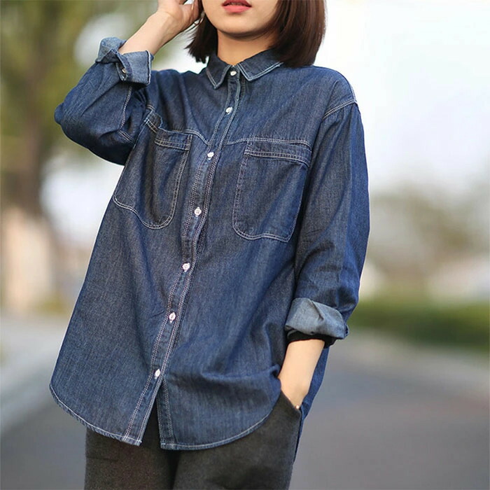 デニムシャツ デニム シャツ 長袖 トップス ブラウス レディース ウエスタンシャツ ダンガリーシャツ ウォッシュ加工 ウエスタンデニム サックス ブルー 春 カジュアル シャツ おしゃれ 可愛い