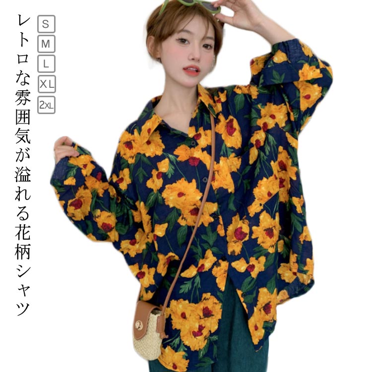 前開きシャツ ブラウス シャツ 花柄 ゆったり シャツブラウス 長袖 カジュアル お洒落 レトロ 春秋 トップス ライトアウター レディース
