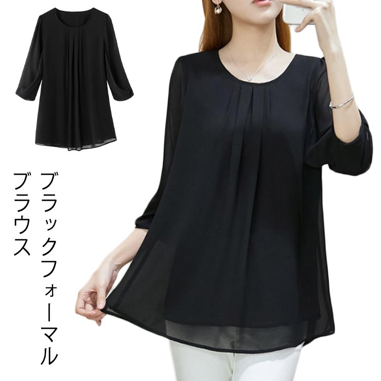 七分袖 喪服 ブラウス シャツ 大きいサイズ プルオーバー ブラックフォーマルレディースファッション トップス シャツ ブラウス