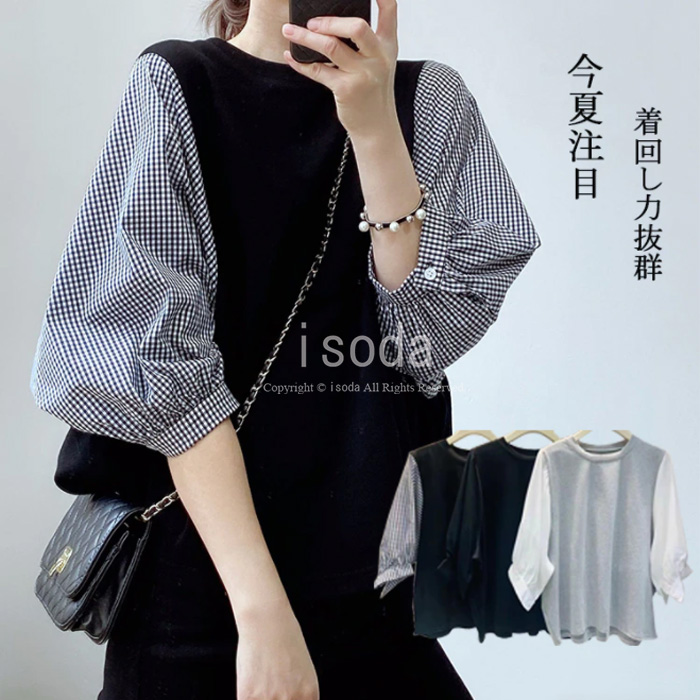 フェイクレイヤード スウェット レディース 秋 プルオーバー レディース 7分袖 重ね着風 トレーナー ゆったり トップス おしゃれ 可愛い 仕事 カジュアル 通勤 通学 お出かけ 通勤 通学
