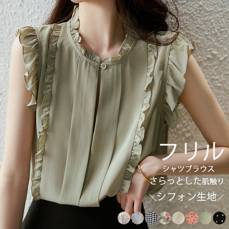 大人気夏カラー登場シフォントップス シフォントップス シャツ 切り替え フリル ウェーブ デザイン感 ギャザー タックシャツ お洒落 キレイメ 大人 着心地良い 涼しい 快適