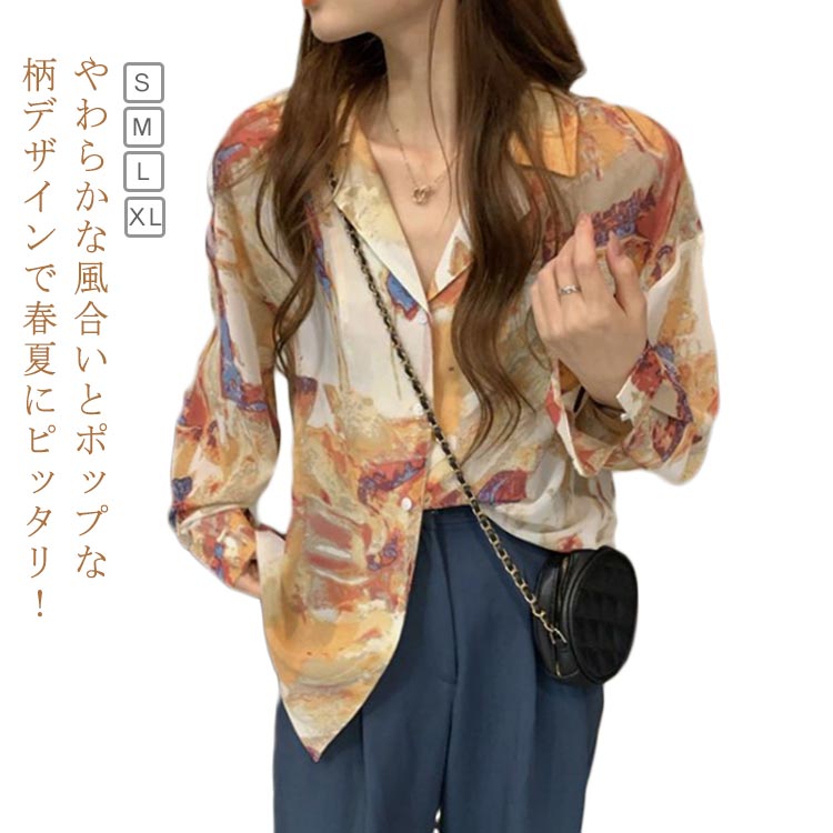 シャツ ブラウス レディース 長袖 春夏秋 日焼け止め 柄シャツ 総柄 レトロ 前開き おしゃれ トップス 長袖