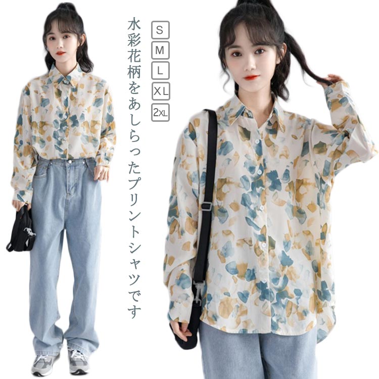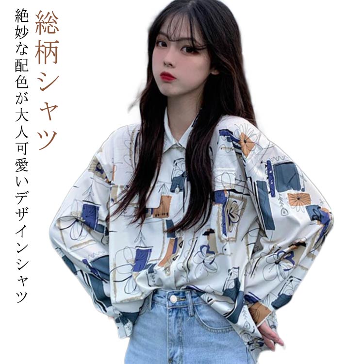 柄シャツ シャツ レディース カジュアルシャツ 長袖 おしゃれ オーバーサイズ 大きいサイズ レトロ 花柄プリント 配色 総柄 個性的 原宿系